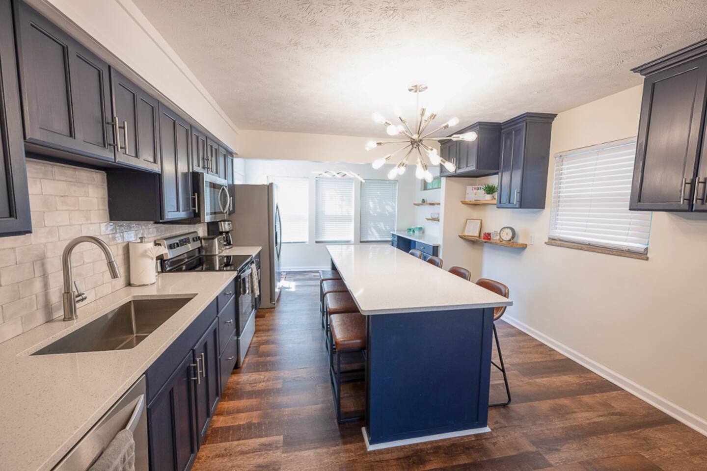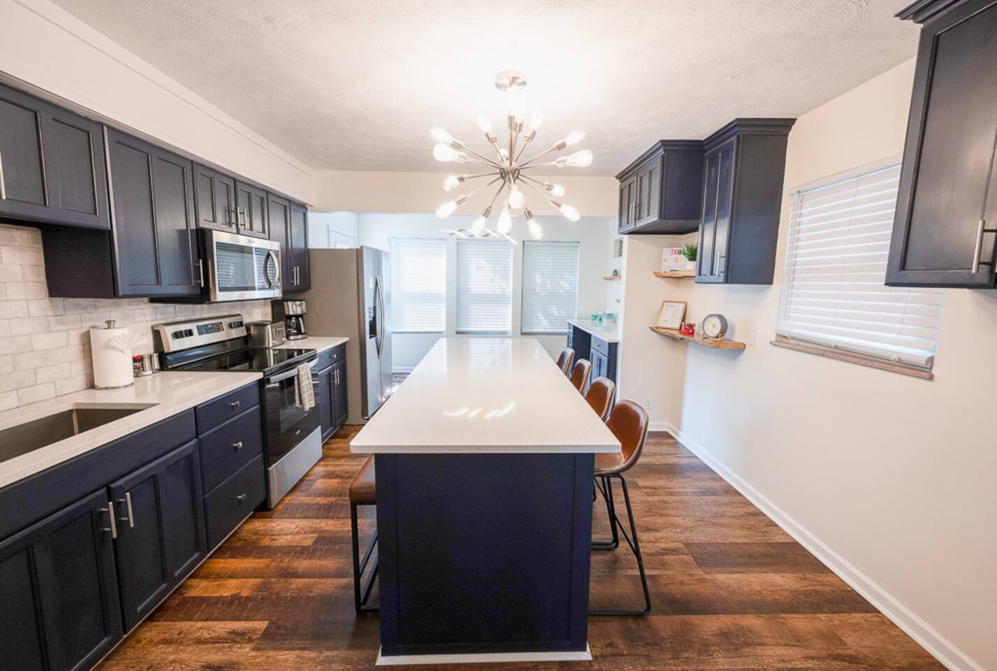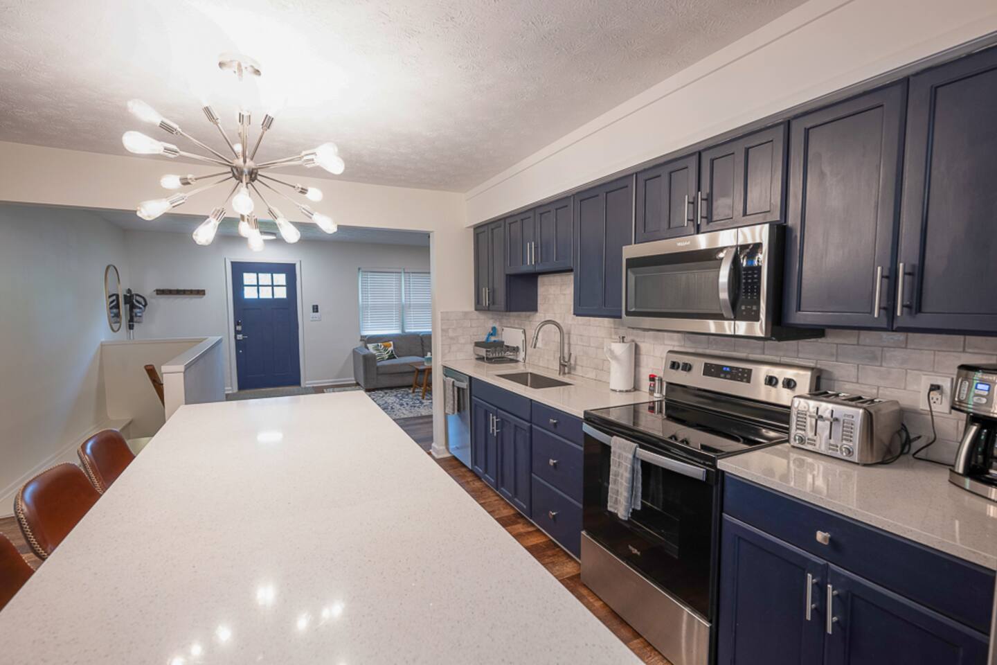 🛌 3 bedrooms; 2 queen and 1 double, and sleeper sofa (best for kiddos rather than adults). Roku smart TVs in each room 🛁 1 full bathroom; tub/shower combo, mirrored vanity. Please note there is only one bathroom. 🐶 DOG FRIENDLY (Dogs are allowed on a case by case basis. Requires approval before booking.) 🧑🍳 Fully equipped kitchen; new appliances, complimentary coffee. 📺 55”, 50” and two 43" 4K Roku Smart TVs 💻 Laptop-friendly workstations and free high speed WiFi 🏡 Big backyard (partially fenced) and shady patio; outdoor dining, fire pit, 🎱 Pool table, darts, smart TV and board games in basement game room 🧺 Washer and dryer available for use free of charge 🚗 Ideal location; with easy access to downtown and all major highways ( I-71, I-670, I-315) ⭐️⭐️⭐️⭐️⭐️ Expect a Five Star stay with us. We have a full digital concierge to assist with booking activities, reservations, and more. Here’s what a few guests have said: 🗣️ "We were very happy with this house. It was very clean and well stocked! We loved the open concept and how updated the kitchen was. Great game area in basement! Evan was great in communicating in a very timely manner and very hospitable! Would definitely book this house again. Thank you Evan!" -Linda ✨ "The stay was great! Great house with a pool table and nice furnishings. Evan was a great host who made sure I was comfortable and had anything I needed. Would definitely book again if in the area. thanks so much Evan!" -Michael ⭐️⭐️⭐️⭐️⭐️ ☆☆ BEDROOMS ☆☆ This modern vacation rental offers three spacious bedrooms, ideal for families, small groups, or business travelers. Each bedroom provides comfort and privacy, making it easy to relax after a long day exploring the city. The first and second bedrooms both feature cozy queen-size beds with high-end linens, perfect for a restful night’s sleep. The third bedroom offers a comfortable full-size bed, great for additional guests or children. Each room is bright, welcoming, and designed to make you feel at home. ☆☆ BATHROOM ☆☆ The home features a recently updated full bathroom with a shower/tub combo, perfect for relaxing after a busy day. You'll find complimentary toiletries and soft, high-quality towels. The bathroom is bright and functional, with a mirrored vanity offering plenty of storage space for your essentials. ☆☆ KITCHEN ☆☆ Whether you’re whipping up a quick breakfast or preparing a full dinner, the spacious kitchen is fully equipped with stainless steel appliances and a large center island, perfect for meal prep. It includes all the essentials like a stove, microwave, dishwasher, coffee maker, and plenty of cookware and utensils to make your stay as convenient as possible. The open layout and bright design make this kitchen a joy to cook in. ☆☆ LOUNGE ☆☆ Relax in the bright and airy living room, complete with a smart TV where you can log into your streaming accounts and enjoy your favorite shows. The open design allows plenty of natural light, and comfortable seating makes it a great spot to unwind. ☆☆ BASEMENT GAME ROOM ☆☆ Head down to the basement for some fun and games! The game room is fully equipped with a pool table, darts, and a dry bar—making it the perfect spot to hang out with family or friends. Whether you’re looking for friendly competition or a laid-back evening, this space is ready for entertaining. ☆☆ OUTSIDE SPACE ☆☆ Step outside and take advantage of free parking in the driveway, with additional street parking available. Whether you’re staying for a short trip or an extended visit, this home offers plenty of space for you and your guests. The back patio is perfect for enjoying a meal with friends and family. ★☆ Book Today & Let Us Take Care Of You In Columbus! ☆★