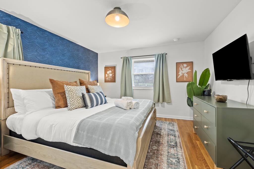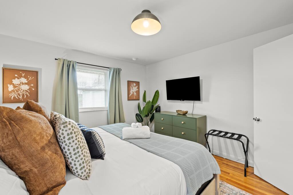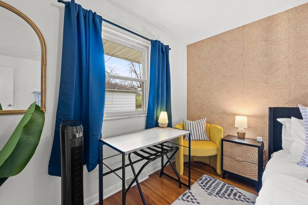 Please note-this listing is a whole duplex. Each side has 2 bedrooms and 1 bath. This allows large groups to book, but have separate spaces. Welcome to The Sunnyside Sweet Suite and Sunnyside Modern Classic by Stupendous Stays! ☀Whole duplex with separate and private sides. ☀ 4 bedrooms; 2 King, 2 Queen , 2 pull out couches ☀ 2 full bathroom; tub/shower combo, mirrored vanity ☀ DOG FRIENDLY (Dogs are allowed on a case by case basis. Requires approval before booking.) ☀ Fully equipped kitchen; new appliances, complimentary coffee. ☀ 55” and 44” 4K Roku Smart TVs ☀ Laptop-friendly workstations and free high speed WiFi ☀ Big backyard (not fenced) and shady patio; hammock, fire pit, ☀ Board games for inside and yard games for outside ☀ Ideal location; central with easy access to downtown and all major highways ( I-71, I-670, I-315) 9 min drive to Ohio State University 13 min drive to Downtown/Short North 15 min to John Glenn Columbus International Airport Expect a Five Star stay with us. We have a full digital concierge to assist with booking activities, reservations, and more. Here’s what a few guests have said: "Evan was a great host! Everything met or exceeded our expectations. Evan was friendly, helpful, and responsive. We will book with him again, in the future!" -Jacob "Was a truly lovely stay. A very responsive host. Everything was outlined perfectly and easy to understand. Lots to do around the area. Was perfect for what we needed." -Amanda Stupendous Stays would love to be your home base for your Columbus travels! The Sunnyside Modern Classic/Sunnyside Suite Sweet is a Stupendous Stays property. Stupendous Stays is a small, family run hospitality company. We are thrilled that you're considering Stupendous Stays for your Columbus experience! ☆☆ BEDROOMS ☆☆ This modern duplex has four spacious bedrooms, and the layout is perfect for small families, a few friends, or business travelers. The bedrooms offer privacy and space after a long day in the city. Two bedrooms have king-sized beds with pillow top mattress, gorgeous hardwood floors, and a smart TV. The high-end linens plus white noise machine will have you falling fast asleep before you know it. The second two bedrooms are equally as comfortable with a memory foam queen-sized bed, stylish wallpaper , and a window allowing plenty of natural light. All bedrooms have tower fans and dressers so you can unpack your suitcases and feel at home. ☆☆ BATHROOMS ☆☆ This home has two full bathrooms recently upgraded to provide an elegant space to unwind or prepare for the day. It includes a tub/shower combo and a mirrored vanity with plenty of storage for all your bathroom essentials. The water pressure is excellent, the towels are soft, and the lighting is perfect for ensuring your hair, makeup, and outfit look their best. ☆☆ KITCHEN ☆☆ While this house is just minutes from some of the best restaurants and most popular places in Columbus, there may be nights when you want to stay in and cook a homemade meal. On these occasions, you'll be thankful for the full kitchen and all its gadgets, stainless steel appliances, and utensils. A seamless blend of white accents and chrome finishes, the kitchen boasts a microwave, stove, dishwasher, coffee maker, and a Brita water filter. The full-size fridge is big enough to hold all of your groceries. Small details like a spice rack, Keurig coffee cups, a gourmet knife set, and a pantry full of small kitchen appliances will help you feel right at home. Enjoy a family dinner with enough seating for 4-6 at each kitchen table ☆☆ LOUNGE ☆☆ Each living room is a stylish hangout space with enough seating for 6. The sofa pulls out into a comfortable bed and invites you to watch your favorite shows on the TV (streaming services are not provided but feel free to log in to your accounts). Take advantage of the Bluetooth speaker and a variety of kids' story books and coloring books. A plush area rug adds texture to the hardwood floors, and two earthy green armchairs provide additional seating ☆☆ OUTSIDE SPACE ☆☆ If you love to entertain, you'll love the big backyard. Open the door from the kitchen and dining room area and step into your own outdoor entertainment space. Here you'll find tall mature trees that cast pockets of shade throughout the backyard, a designated patio with outdoor dining furniture, and plenty of room to run and play. Rope lights add a twinkling glow to the backyard, and a hammock is a perfect place for a nap in the shade. Challenge friends or family to a game of cornhole, or bring some snacks and a bottle of wine out to the fire pit and share your day adventures laid back in the Adirondack chairs. However you choose to entertain, this private backyard is a great place to do it. ★☆ Book Today & Let Us Take Care Of You In Columbus! ☆★