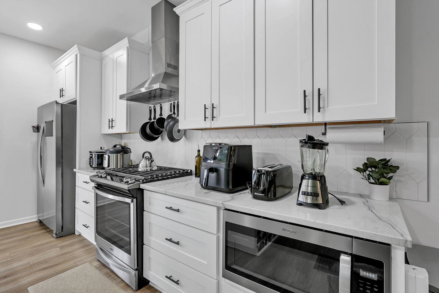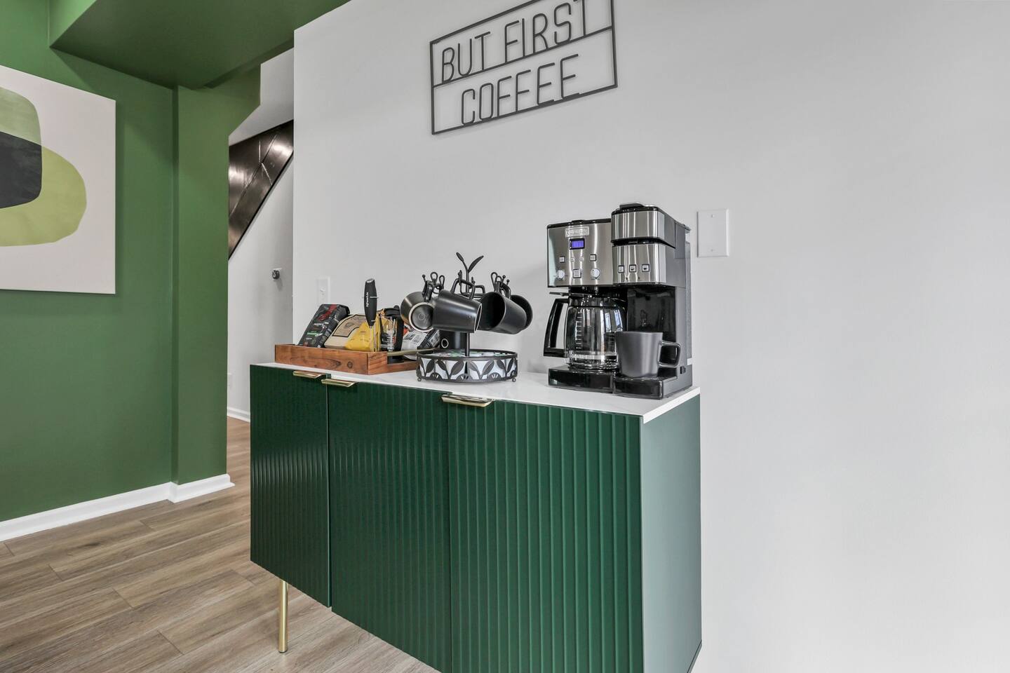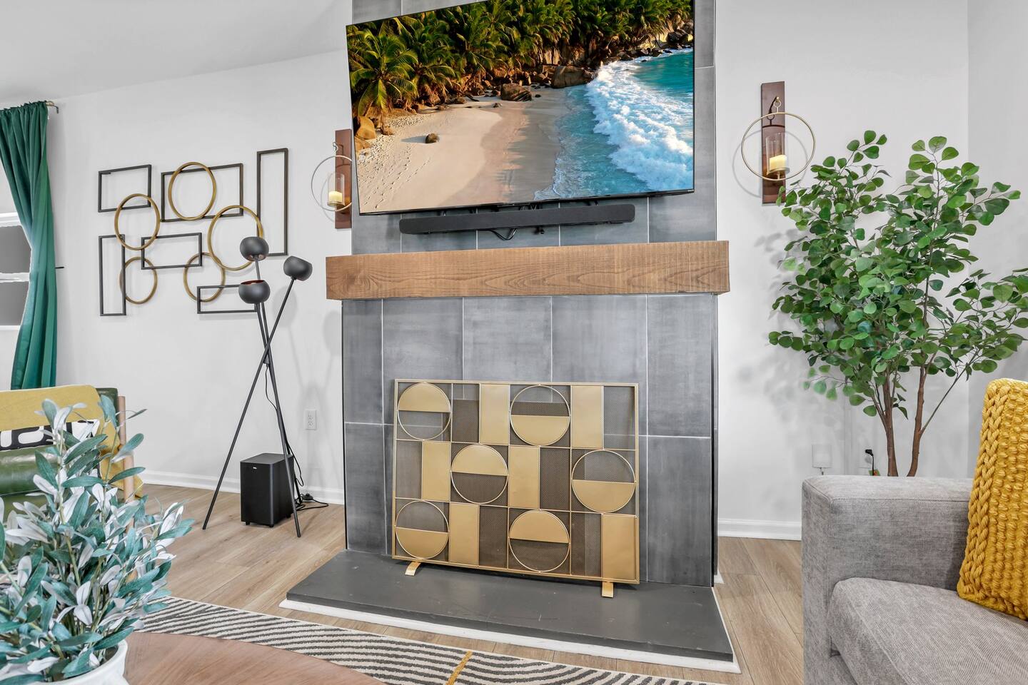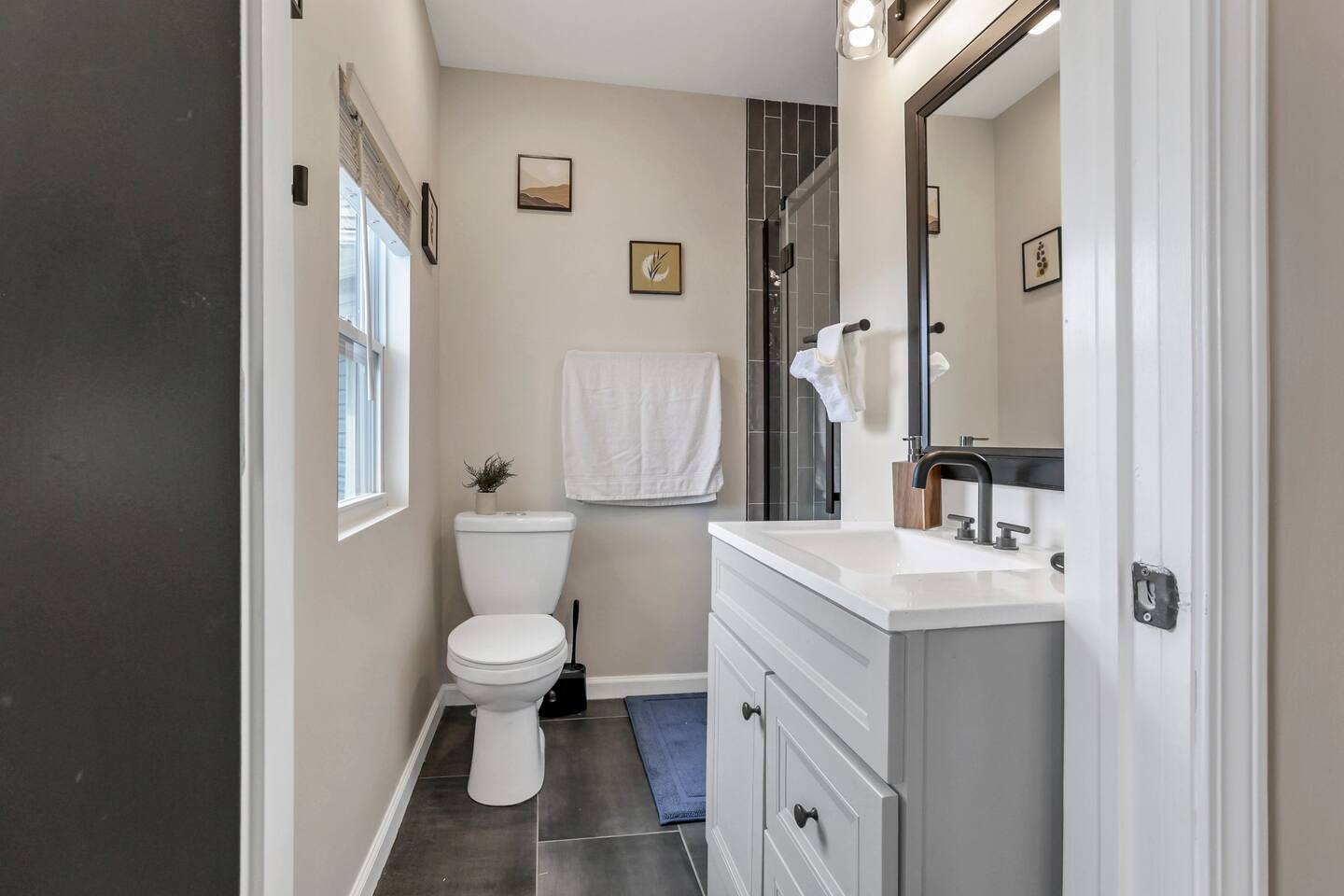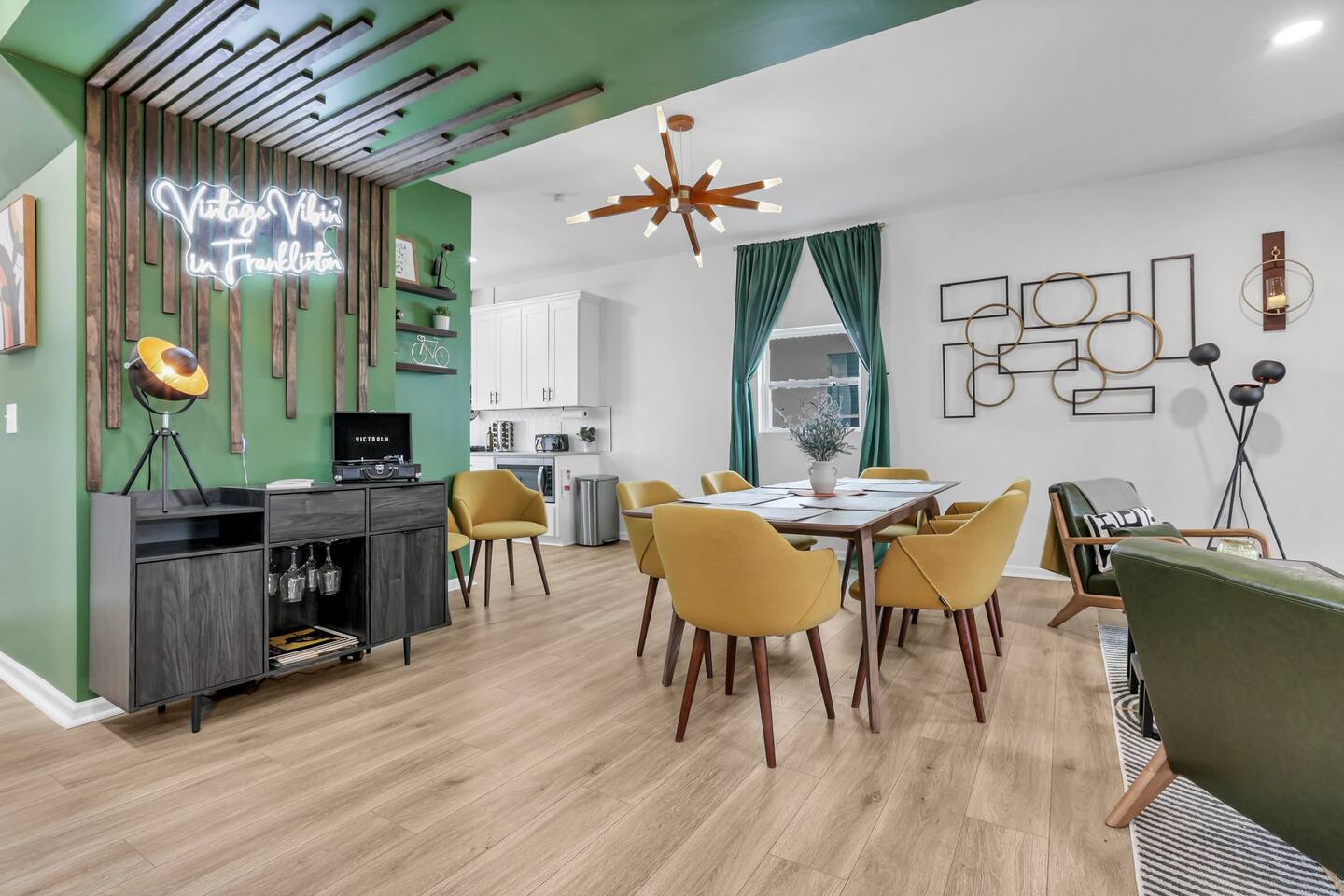 Swanky Suites is a Stupendous Stays property. Stupendous Stays is a small, family run hospitality company. KEY FEATURES: 🛏️ 4 bedrooms; 2 kings, 3 queens, 1 full size sofa bed 🛁 3.5 bathrooms; complimentary toiletries 🐶 DOG FRIENDLY (Dogs are allowed on a case by case basis. Requires approval before booking.) Mostly fenced in backyard. There is a 3-4' opening. 🧑🍳 Full kitchen w/ stainless steel appliances + coffee/tea bar 🏠 Bright, spacious living area 🔊 Record player and bluetooth soundbar in living room 🧑🧑🧒🧒 Family-friendly space w/ board games + coloring materials 🛜 High-speed wifi (FIBER) + Smart TVs 🧑💻 Workspace w/ monitors, mice, printer + ultra comfortable chairs 🅿️ Free parking street parking ⚽️ Backyard w/ fire pit, outdoor games, hammock ⭐️⭐️⭐️⭐️⭐️ Expect a Five Star stay with us. We have a full digital concierge to assist with booking activities, reservations, and more. Here’s what a few guests have said: 🗣️ "Evan was an amazing host and the property is absolutely stunning! This was one of the best stays we’ve ever had. Please book this place for your next stay! " -Brittany ✨ "Evan was an awesome host! We were in town for a wedding and his space held 10 of us comfortably. It was right next to where we had to go and parking was also very accessible. Evan was very fast to respond to me and was checking in to make sure everything went smoothly. Would definitely recommend staying here!" -Megan Stupendous Stays/Swanky Suites would love to be your home base for your Columbus travels! ⭐️⭐️⭐️⭐️⭐️ ☆☆ BEDROOMS ☆☆ This upscale retreat features four custom-designed bedrooms, so you can enjoy a unique and relaxing sanctuary at the end of the day. Each bedroom is equipped with a white noise machine, memory foam mattresses, and a Smart TV for your convenience. You’ll find three spacious bedrooms on the second floor. The first bedroom contains a plush king-sized bed with colorful accents and plenty of closet space to unpack all your belongings. Enjoy your favorite programs on the 43” Roku TV. The second bedroom features tranquil blue tones and a cushy king-sized bed. You’ll also find a closet with a pack-n-play, a stroller, and child safety items, so you don’t have to worry about bringing your own. There’s also a 55” Roku TV in this room. The third bedroom on the second floor features modern details, a comfy queen-sized bed, and an ensuite bathroom for ultimate privacy. There’s also a 55” Roku TV in this room. Make your way up to the top floor where you’ll find the fourth bedroom. Boasting two queen-sized beds, a cozy reading nook, and a stylish dresser, you’ll have everything you’ll need for a comfortable and unforgettable experience. There’s also a 55” Roku TV in this room. Each bedroom has a white noise machine and tower fan in it as well. If you need a little extra space to accommodate your group, there’s also a sofa bed in the living room. ☆☆ BATHROOMS ☆☆ The pristine bathrooms are the perfect place to get ready for your day on the town! There are three full bathrooms, each equipped with a hairdryer, fresh towels (including makeup towels), and Ginger Lily Farms shampoo, conditioner, and body wash. On the second floor, you’ll find two full baths, one boasting a beautiful tiled walk-in shower and the second containing a shower/tub combination, so you can choose between a relaxing soak or a quick rinse. The third floor has a spacious full bathroom with a tiled walk-in shower, a double vanity, and exposed brick, adding to the modern charm of the home Finally, you’ll also find a half bath on the main floor to cater to the common areas. In the half bath, there is a washer and dryer to keep your clothes clean! Laundry soap, a vacuum, a broom, and an iron and ironing board can all be found in the laundry room cabinet ☆☆ KITCHEN & DINING ☆☆ Whip up delicious meals in the sophisticated fully-equipped kitchen. You’ll find everything you’ll need, including an extensive array of cookware and dish-ware, so you never have to fret about running out of pots, pans, or cooking utensils. Chefs of your group will adore the high-end stainless steel appliances, sleek countertops, and exquisite cabinets. Enjoy a quick cleanup using the dishwasher. Dishwashing pods will be provided so you don’t have to worry about picking them up at the grocery store. In the fridge, you’ll even find complimentary butter, sugar, baking soda, and condiments for your convenience. Start your morning with a cup of coffee or tea, fresh from the complimentary coffee bar, stocked with whole bean and ground coffee, K-cups, cream, sugar, sweeteners, and tea. You can enjoy your beverage of choice at the sleek kitchen island by pulling up one of three stools. When you’re ready for a formal meal, make your way into the large dining area. Take a seat around the beautiful wooden dining table that can comfortably seat up to eight guests. Additional guests can enjoy dinner at the kitchen counter and still socialize, thanks to the open-concept layout. If you’re traveling with little ones, help yourself to the high chair located in the laundry room. The record player is located just beside the dining table, so you can enjoy some enchanting tunes while digging in. ☆☆ LOUNGE ☆☆ As you enter the home through the front door, you’ll be greeted by the swanky neon sign, a record player, and the contemporary lounge flooded with natural light. This chic space is the perfect place to gather with your group and enjoy quality time. Sit back on the sectional sofa and watch your favorite movie on the 65'' Roku TV with a soundbar for an immersive experience. When you’re not watching movies, enjoy some board games while kids of the group take advantage of the complimentary coloring books. ☆☆ HOME OFFICE ☆☆ Need to get some work done during your stay? You’ll find an unparal