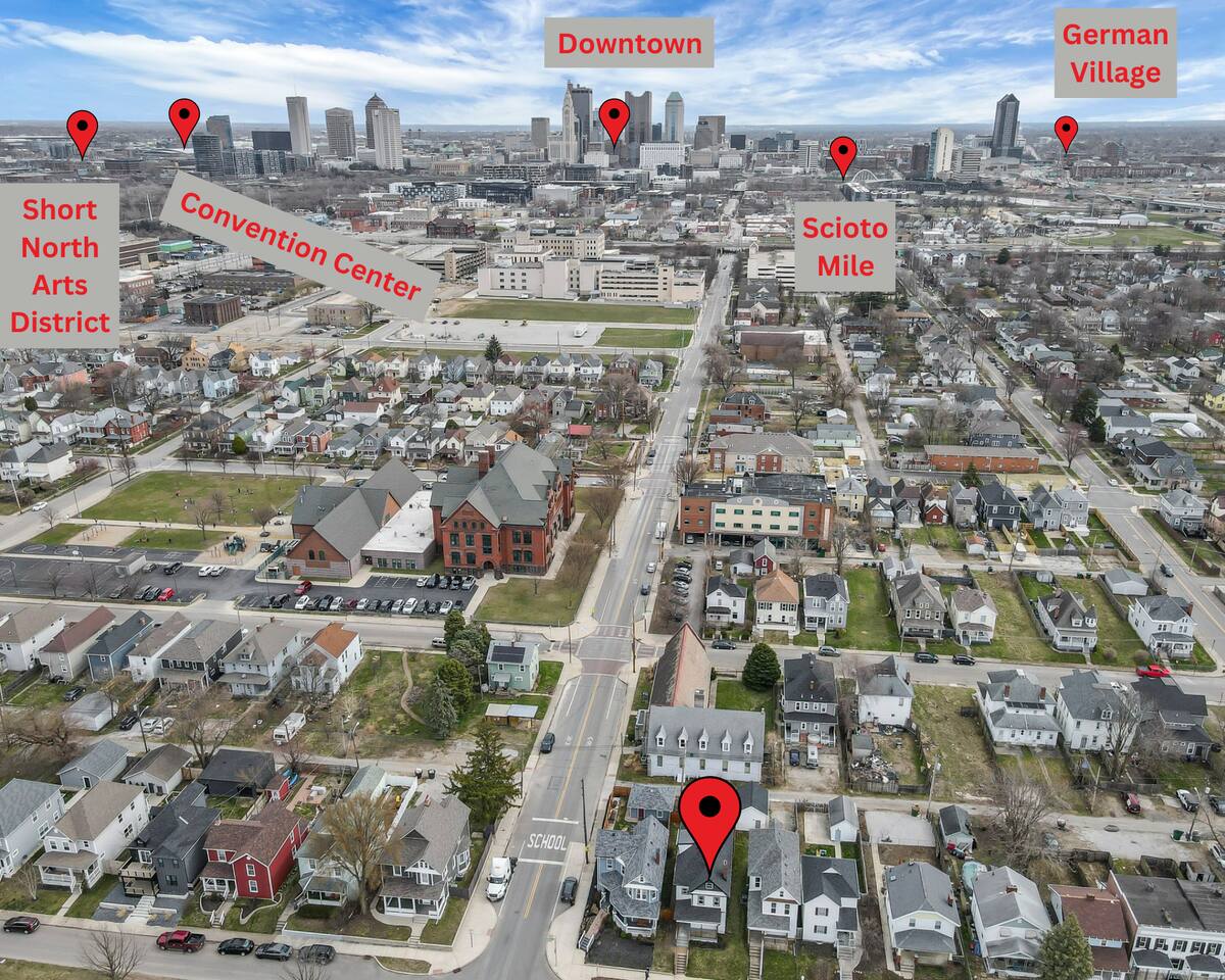 The property is located in Franklinton, a rapidly developing area near downtown Columbus. The property is on an updated street filled with recently renovated houses. There is a library, church and elementary school within eyesight. Though not quite walkable yet, many bars, restaurants, attractions and all downtown attractions are only a short Uber or Lyft ride away. Distance to popular landmarks: 5 min to downtown 6 min to Nationwide Arena 9 min to Ohio Stadium 16 Min to Easton Town Center -12 min drive CMH airport - 7 min to Greater Columbus Convention Center -7 min to historical Short North Arts District - 5 min Downtown Columbus - 6 min to Nationwide Arena -7 min to Ohio Stadium - 10 min drive to Historic Crew Stadium -5 min drive to Lower .com Field -25 min drive to Muirfield Village Golf Club - 7 min drive The Ohio State University campus -7 min to Columbus State Community College -11 min to Capitol University -10 min to Franklin Park Conservatory and Botanical Gardens -4 min to COSI -9 min to Columbus Museum of Art -4 min to National Veterans Memorial and Museum -4 min to Strongwater Food and Spirits -3 min to Brewdog Franklinton -3 min to Land Grant Brewing - 10 minute drive to Nationwide Children's Hospital -10 min drive to Riverside Methodist Hospital -6 min drive to Ohio State University Wexner Medical Center -18 min drive to Polaris Fashion Place - 17 min drive to Easton Town Center Mall -20 min to Bridge Park -12 min to Hollywood Casino -15 min to Scioto Downs -9 min drive to Ohio Expo Center & State Fair - Easy access to all major highways ( I-71, I-70, I-670, I-315) -COTA bus stop about 500' away