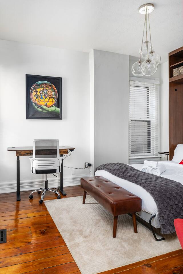 The Hamlet House is a lovingly curated stay hosted by Stupendous Stays in the heart of Columbus’ vibrant Italian Village. Located on a historic brick street just blocks from the Short North Arts District, this 3-bedroom, 2-bath home blends historic charm with modern comfort and backyard relaxation. We’re so excited to welcome you to Columbus — here's what makes this space special: 🛏️ 3 spacious bedrooms – 1 California King, 2 Queen beds 🛋️ Queen sleeper sofa in the living room 🛁 2 full bathrooms with tub/shower combo in one 🖼️ Original exposed brick & refinished hardwood floors 🎨 Decorated with the owners’ original artwork 🐶 Fully fenced yard – dog friendly (with pre-approval, up to 2 dogs) 🌿 Backyard Oasis 🛁 6–8 person private hot tub 🔥 Fire pit with outdoor seating 🍖 BBQ grill & outdoor eating area 💡 String lights for cozy evening vibes 🚘 2–3 off-street parking spots (access via alley) 🅿️ Additional paid street parking available 🚶♂️ 5–10 min walk to Short North restaurants, bars, shops & Budd Dairy Food Hall 🖼️ Quick access to downtown, Convention Center, Arena District, and OSU campus 📶 High-speed WiFi 📺 Smart TVs in each bedroom 🧑🍳 Fully equipped kitchen with modern appliances 💼 Laptop-friendly workspace with standing desk 🚭 Smoking allowed outdoors (ashtray provided)